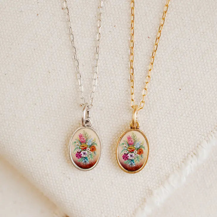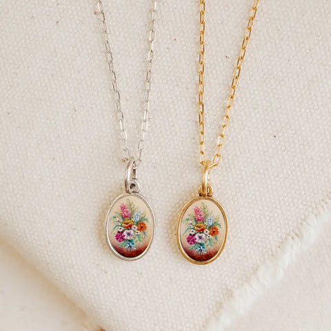 This Bouquet pendant charm is made by hand, encasing & sealing an original image in layers of resin.